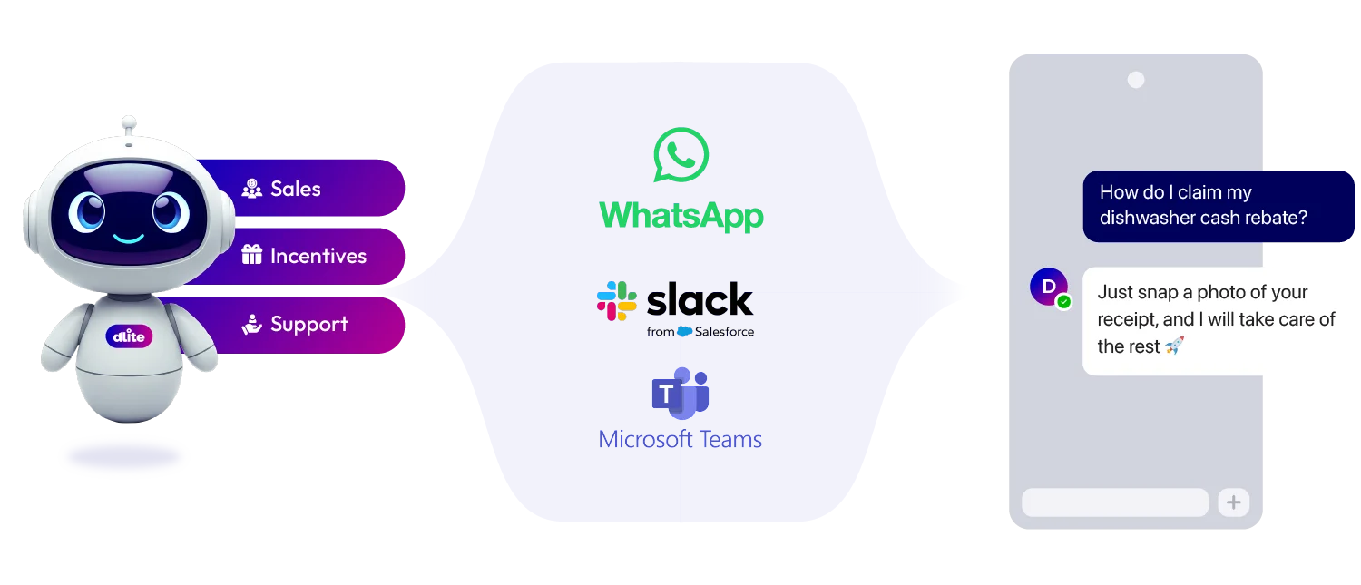 With Dlite’s agent builder, you can design agents that actively support customers and channel partners in ways that drive real outcomes, not just conversations.